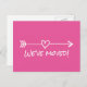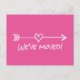 Change of address postcards with heart arrow and colourful background colour ie neon pink. Moving postcards with handwriting typography template design. Custom move text; We have moved! Add your new address of your house on the back. Simple modern moving cards for new home, housewarming party or business location. Cute print for newlyweds couple.