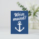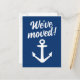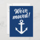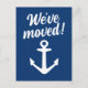 We've moved nautical anchor moving Announcement Postcard for new home. Custom move text; We have moved! Add your new change of address on the back. Stylish typography new house cards for home and business. Also great for business, shop, store, company etc. Navy blue and white colours.