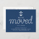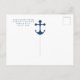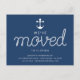 Moving announcement design featuring a white anchor and nautical rope font set on a blue background. Flip our postcard over to view an anchor for an extra special touch.