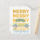 Announce your relatives and friends that you have moved to a new home with this modern yellow mustard and blue big typography festive holiday card featuring a cute hand-painted car carrying a Christmas tree. +++++++++++++ Easy to personalise with your new address details, wishes and family signature on both sides!