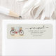 Chic boho moving announcement return address label featuring watercolor red female bicycle with modern hand lettered and black typography you can customise.