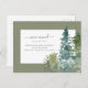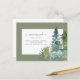 This design features watercolor pine trees and custom script calligraphy on a simple background.