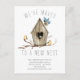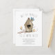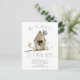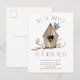 Rustic new nest moving announcement post card a wood birdhouse with birds.