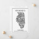 Send your family and friends this boho Illinois state new address moving announcement flat card. This modern design features a black and white illustration of the state of Illinois accented by a floral mandala. The top of the card reads "We've Moved To:" Below the state illustration is your name and new address to personalise. The back of the postcard has a message and signature for you to customise as well. Designed by Susan Coffey.