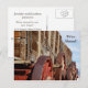 What a cute announcement for your new address! Front of postcard is a photo of an old wooden wagon with red wheels. Reverse is standard postcard format, with example text that you can easily modify. Matching postage stamp is zazzle item 172670260766651620. Original photograph by Marcia Socolik. All Rights Reserved © 2015 Alan and Marcia Socolik.