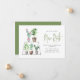A simple pretty card to announce your recent move to family and friends. The simple design features a watercolor illustration of a rack of assorted potted plants. Personalise with your family name and new address. The reverse side is coordinated in green