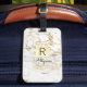 Wh & Gold Marble Gold Box, DIY Black Name Monogram Luggage Tag