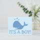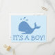 Whale baby shower postcards | It's a boy! Cute cartoon animal invitations for new baby.