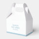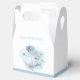 Whale baby shower thank you favour boxes with a minimalist design in blue and white. Personalise it with a message on the front and the mum-to-be name, and party date on the back.
