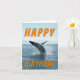 Celebrate big with this ocean-themed birthday card featuring a majestic whale breaching. Inside reads "Have a whale of a time!" Perfect for sea life lovers and marine-themed parties.