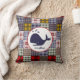 A pillow featuring an illustration of a whale over a madras plaid background. Personalise with name.
