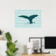 A graphic design of a whale tail on a chevron sea. Good to adorn your home or office walls. It will fit fine in a beach house decoration.