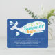 This fun, vibrant birthday pool party invitation features a white whale, outlined in aqua, over a bright blue background. Modern style text reads "it's a Summer bash" in aqua, lime green, and orange. Easy to customise for your special event!