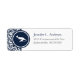 Whale Theme Navy Damask Address Labels.Whale with navy blue damask pattern return address labels.