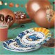 Boy's birthday party in a nautical or maritime theme paper plates. Blue, yellow whales pop art. Add child's name in the personalise area.