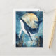 This breathtaking design features a majestic humpback whale shown gliding gracefully in front of a massive, glowing full moon. Created as a high-quality digital illustration in a sophisticated watercolor style, the whale has deep indigo skin adorned with white speckled stars and a prominent white underbelly. The character is captured in a vertical dive against a celestial backdrop where delicate white constellations and stars shimmer in the dark blue night sky. Below the whale, stylised golden-brown seaweed and aquatic plants grow from the shadowy depths, accented by shimmering gold paint splatters and light bokeh effects that create a sense of magical underwater wonder. The overall aesthetic is mystical, serene, and full of artistic elegance, making it an exceptional choice for marine life enthusiasts and fans of celestial-themed nature art. This mystical whale postcard is a perfect choice for sending a "thinking of you" note or a meaningful message of inspiration to a friend who finds peace in the deep blue sea. You might choose to use this artistic card for a celestial-themed moon party invitation or as a beautiful way to share a message of joy for any situation or event. It also makes a stunning decorative piece for a modern office wall or a stylish addition to a dream journal as a small token of nautical magic. This versatile design is also an excellent choice for a housewarming message, a graduation thank you note, or to celebrate a professional achievement with a touch of cosmic elegance for your colleagues.