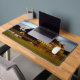 LOVE this desk mat! It's large! It fits across my desk. No need for a small mouse pad now! Color and print are excellent. Quality seems to be excellent too. Delivery was about 3 days sooner than expected. I think this is one of my favorite Zazzle products! Excellent. The color is vibrant and true to what I expected.