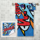 A super cool, trendy comic book pop art set of bath towels that will enhance any bathroom with its fun designer style. A fun, cool and trendy retro comic book pop art-inspired design that puts the wham, zap, pow into your home bathroom decor. The perfect gift for superheroes, your friends, family or as a treat to yourself. Designed by Thisisnotme©