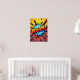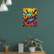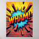 This poster is an explosive tribute to the most dramatic moments in classic superhero comics. It captures the very second of impact, where the 3D word "WHAM!" acts as a shockwave, blasting through a brick wall and sending pieces flying. This artwork is a static yet incredibly dynamic scene that perfectly celebrates a quintessential comic book trope. With its vibrant colours, classic halftone dots, and powerful sense of motion, this piece is more than just decor—it’s a high-energy homage to the thrill of pop culture and a fantastic statement piece for any fan of retro comics and bold design.