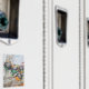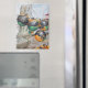 This painting of Boat Bumpers by Manie artist Dominic White provides an everyday image of Portland, Maine’s working waterfront. Hanging from faded white, orange, and blue ropes on a weathered sun-bleached pylon, the bumpers reflect the watery sunlight shining through misty clouds.