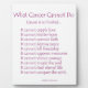 This cancer cannot do poem appears in many of the DonnaBellas Angels art. From online searches, the most that was found about the original authorship was that is supposedly first appeared in the 1960's in an Ann Landers column. There has been variations in the printed text. Sometime it has "...kill friendship" or "kill friendships". Paintings have both options. What Cancer Cannot Do is also available in Spanish "Lo que cáncer no puede hacer". What Cancer Cannot Do Cancer is so limited... It cannot cripple love. It cannot shatter hope. It cannot corrode faith. It cannot destroy peace. It cannot kill friendship(s). It cannot suppress memories. It cannot silence courage. It cannot invade the soul. It cannot steal eternal life. It cannot conquer the spirit. -Author Unknow