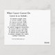 Inspirational cancer art postcard featuring the "Rainbow Cancer Angel" painting. The art includes the "What Cancer Cannot Do" Poem. The full cancer poem is also on the back of the card. Customise the cancer poem angel notecards to make personalised cancer gifts. The postcards are also good for team cancer walks or other cancer awareness events or fundraisers.