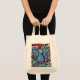 The printing came out very well, better than I had anticipated. The natural color fabric is sturdy with strong seams and comfortable handles. This tote fits easily over my shoulder. As it is filled, the bottom flattens out--very cool! I would buy this product again. This grocery tote holds a lot of groceries! The image quality was very good. The colors were a little darker than I had expected. The darkness may have been due to printing on a natural color fabric rather than on white. The cat design is attractively centered on the tote. The spirit of the design is very lively, just as it appears on the Zazzle website.