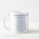 The mug features a painting of the poem "What Cancer Cannot Do" with butterfly word art of Peace, Hope, Faith, and Love. The words of the poem are "What Cancer Cannot Do, Cancer is so limited... It cannot cripple love. It cannot shatter hope. It cannot corrode faith. It cannot destroy peace. It cannot kill friendship. It cannot suppress memories. It cannot silence courage. It cannot invade the soul. It cannot steal eternal life. It cannot conquer the spirit. -Author Unknown"