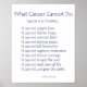 'What Cancer Cannot Do" Poem featured in blue text. Use the custom options to change the background colour. What Cancer Cannot Do Cancer is so limited... It cannot cripple love It cannot shatter hope It cannot corrode faith It cannot destroy peace It cannot kill friendship(s) It cannot suppress memories It cannot silence courage It cannot invade the soul It cannot steal eternal life It cannot conquer the spirit. -Author Unknown This poster print makes an inspirational cancer gift!