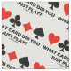 If you play with a fast card playing partner, you'll enjoy this wry bridge saying fabric featuring the four card suits along with the often heard remark at the bridge table: "What Card Did You Just Play?" Make others do a double-take at the bridge table with this bridge query fabric the next time you create!