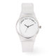 I only have one complaint. I ordered the watch with clear case and strap, and what was sent was white case and strap. I'm going to keep it because 1) it looks very nice in white, and 2) it would take too long to get a replacement made and sent in time for my occasion. Aside from the mix up with the color, the watch does look very good in white. The purple dial is actually sparkly which did not show in the online images. That was a nice surprise. If you like Swatch watches this is very similar to those. It's 33.6mm in diameter, 10.5mm thick, and 40.6mm lug to lug. Stainless steel case back says 3ATM/30m WR, so no swimming or showering or submerging this one. If you like Woodstock, this is a great choice.