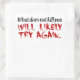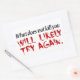 This is so funny. I put it on the outside of a letter to a friend and the postal workers at the post office were laughing and passing it around. It made people laugh and that was my intention. Printing was clear. This sticker was substantial. It comes in four to a sheet but I wish it was smaller and six to a sheet so I could have a few more. I like to spread happiness around.