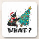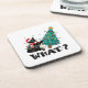 WHAT Funny Black Cat Santa Pushing Christmas Tree Coaster
