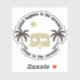 Funny caravan and motorhome sticker of a caravan and palm trees graphic, with the phrase WHAT HAPPENS IN THE CARAVAN STAYS IN THE CARAVAN