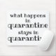 NewParkLane - Mousepad, with funny quote 'What happens in Quarantine stays in quarantine', in fun, modern script typography.