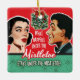 What Happens Under The Mistletoe Ornaments feature a 1950s couple contemplating that first kiss... What Happens Under The Mistletoe Stays Under The Mistletoe! See all our retro Christmas ornaments in our collection too. An original collage illustration by Diane Dempsey.