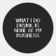 What I Do Drunk Is None Of My Business Classic Round Sticker
