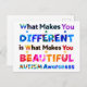 Inspirational quote of “What Makes You Different Is What Makes You BEAUTIFUL” with unique and beautiful Autism puzzles, and flowers to support and advocate Autism Awareness.