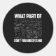 What Part Of Don't You Understand _ Funny Math Tea Classic Round Sticker