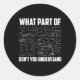 What Part Of Don't You Understand Funny Math Teach Classic Round Sticker