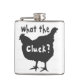 Super cute flask has a silhouette of a chicken and the text "What the Cluck?" in black and white. Makes a Great Gift for the Chicken Lover in Your Life! Put a SMILE on their face :)