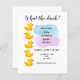 Rubber duck themed gender reveal party invite with cute duck and watercolor artwork.