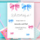 Girl or Boy. Watercolor blue and pink bows with gender reveal party.