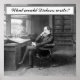Black and white image of a pensive Charles Dickens sitting at a writing desk. One can only wonder what questions are on his mind.