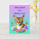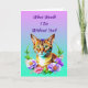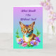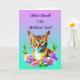 Pretty watercolor style ai art with a cute tabby cat surrounded by pink and purple flowers. Quote on it says, What would I do without you? Besties Fur-ever". Sweet cat and friendship pun.