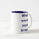 "What would Jesus brew?" coffee or tea mug. Funny version of "What would Jesus do?" or also known as "WWJD?".
