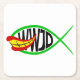 A parody design of the Ichthys (Jesus Fish). The design of the Ichthys fish, mashed up with the Joker Fish from a comic book cartoon. WWJD in black text is inside the fishing, asking, "What Would Joker Do?"