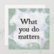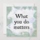 A motivational inspirational typography design features the words "What you do matters" on an abstract white and light green background.