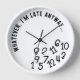 Have trouble getting places on time? Know someone who does? This funny black and white clock is perfect! The clock's text says Whatever, I'm Late Anyway, and all its numbers have fallen down... cause who needs them, right?