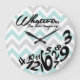 Teal Blue and Gray Chevron pattern. Whatever, I'm late anyway wall clock. Funny Whatever clock.